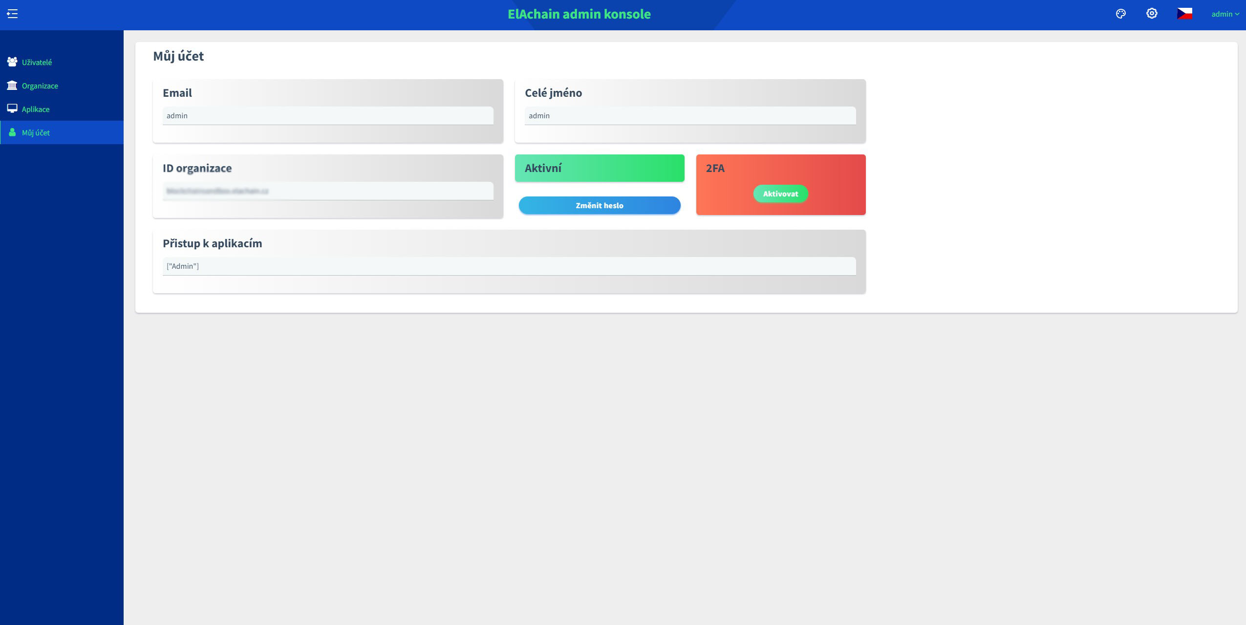 V záložce můj účet spravujeme svůj účet, pod kterým jsme právě v tuto chvíli přihlášení. Zdali je to administrátorský nebo uživatelský účet nehraje roli.