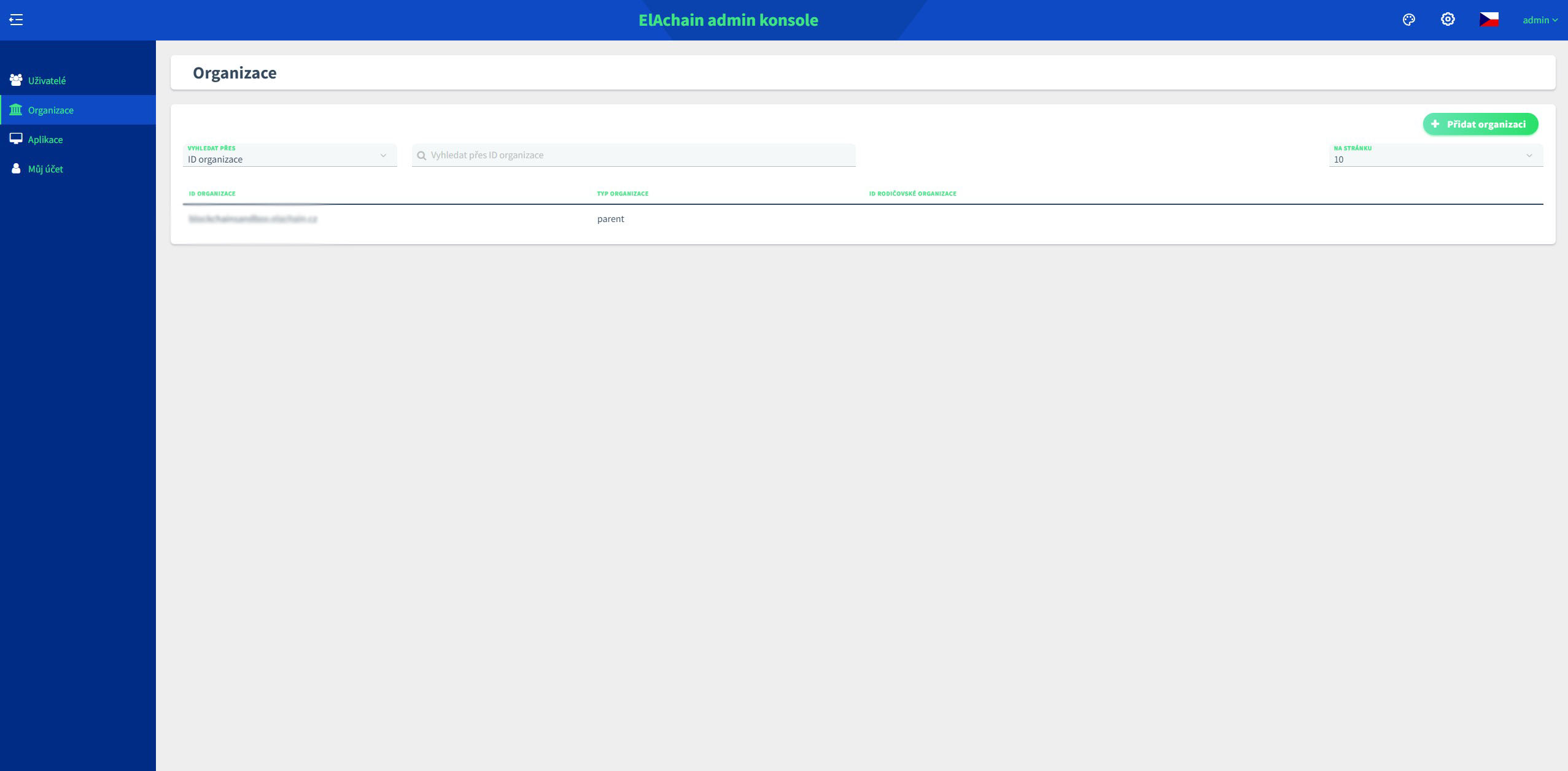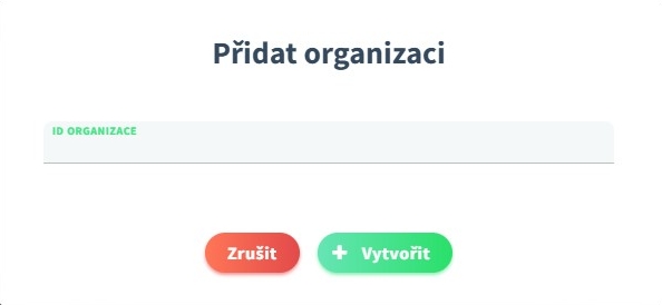 Pokud chcete vytvořit novou child organizaci stačí kliknout na přidat organizaci a zadat její název.