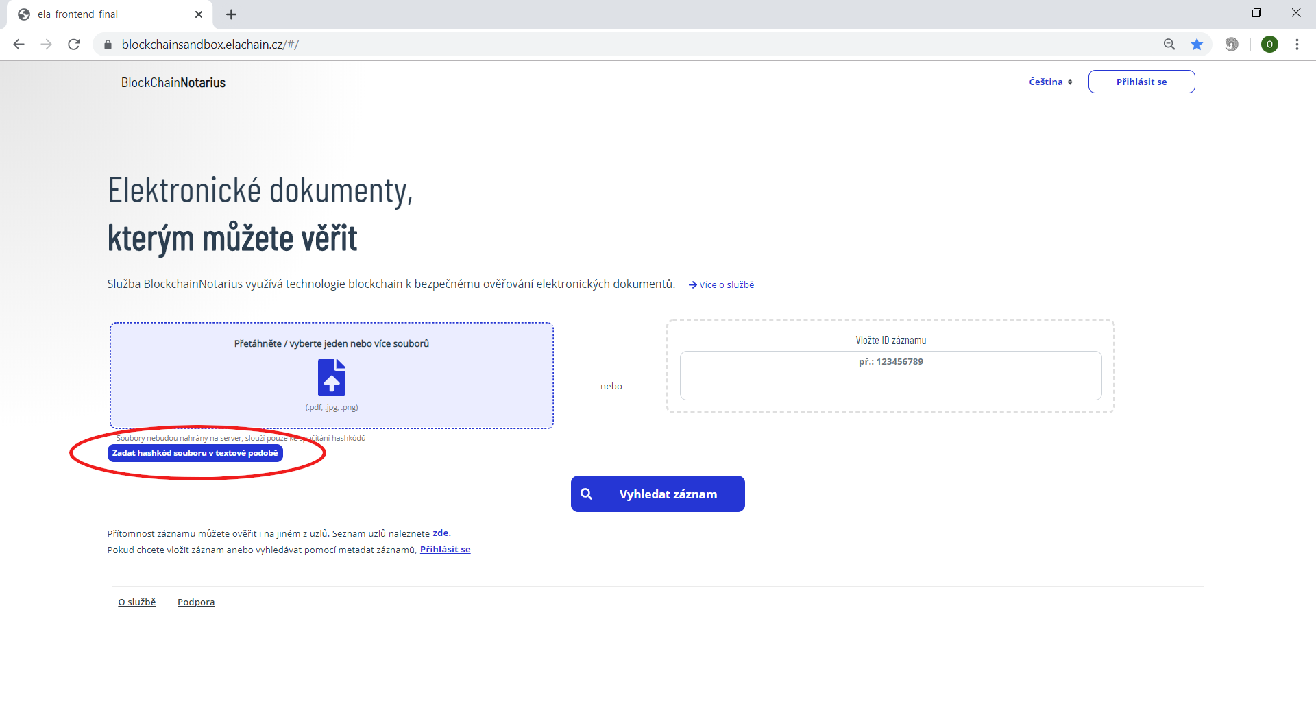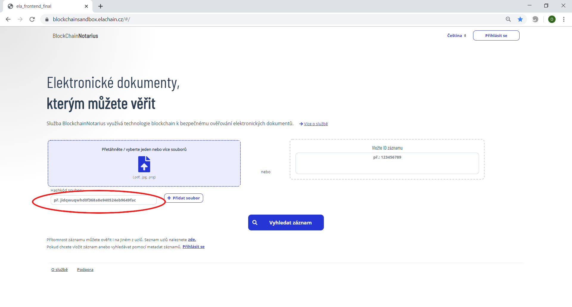 - Vepište vypočtený řetězec znaků hashe do pole , nebo jej přeneste kopírováním (ctrl C, ctrl V)