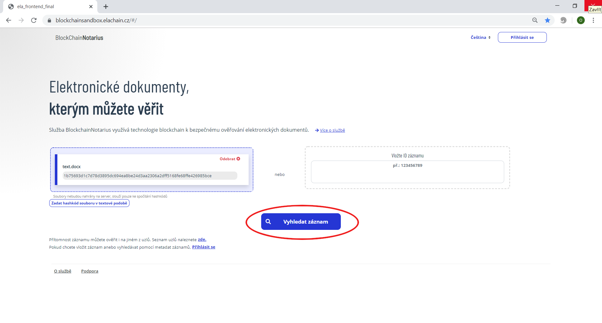 - Klepněte na tlačítko vyhledat záznam , objeví se tabulka Ověřené záznamy